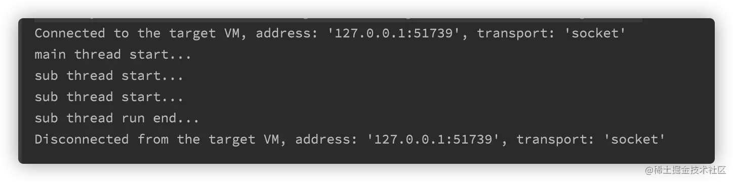 - 主线程运行结束,子线程运行,可以看到主线程已经销毁了