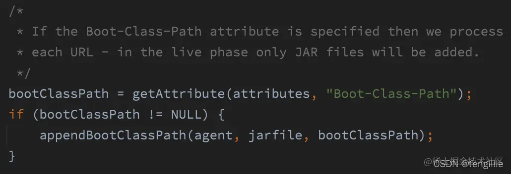 之所以读取manifest文件是jdk定义的,这个是动态attach,读取Agent-Class,另外还有 boot-class-path