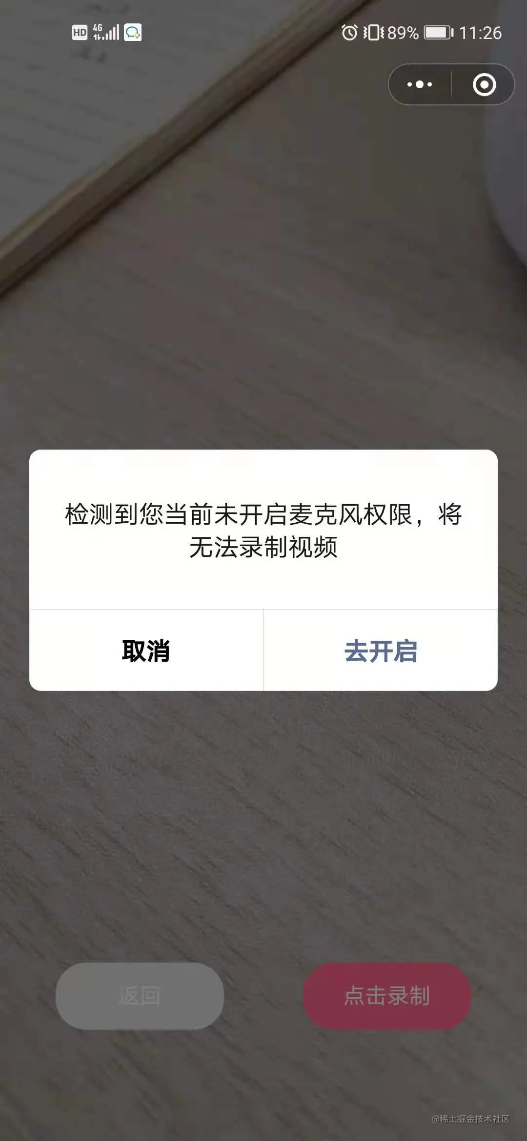 content: '检测到您当前未开启麦克风权限,将无法录制视频',