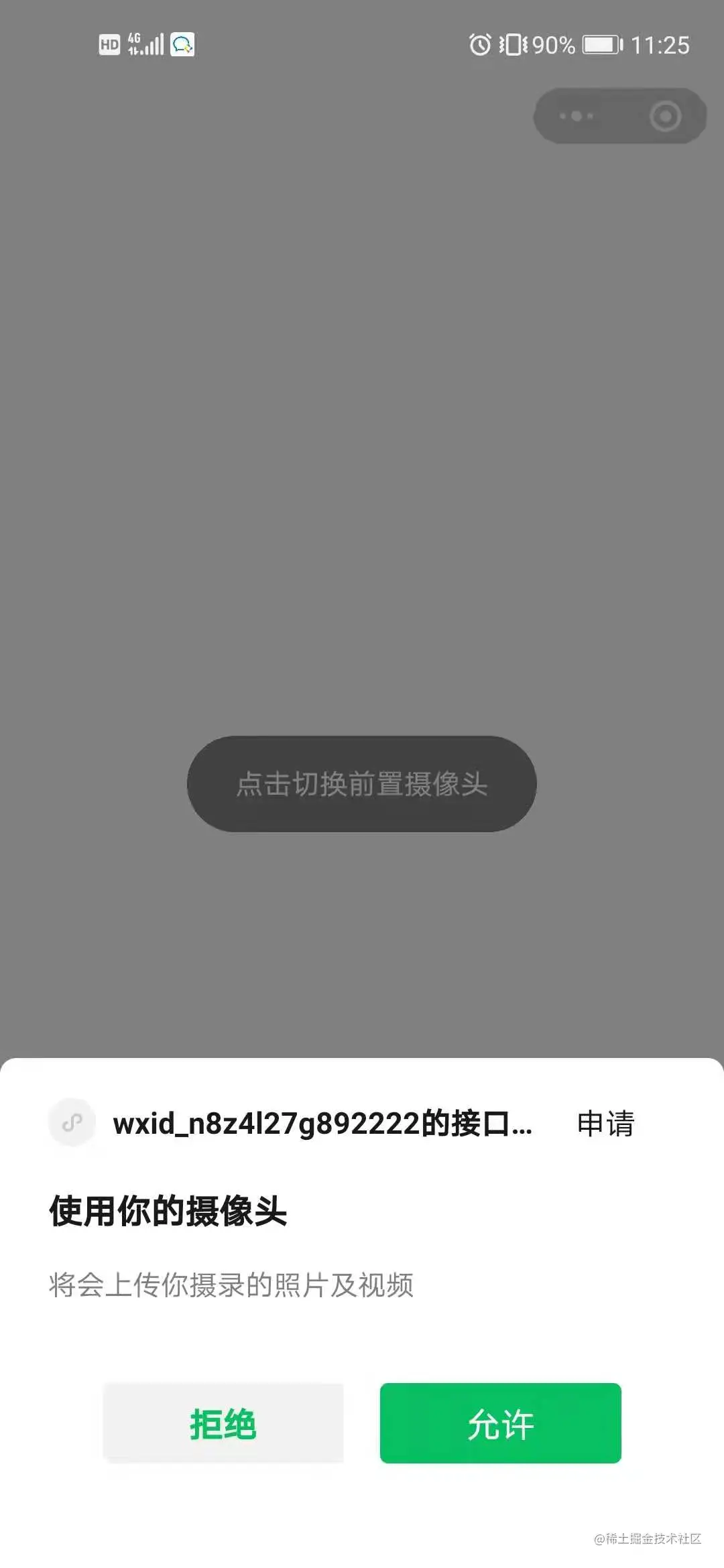 * 由于录像页面使用了camera标签,使用该标签时需要获取摄像头权限,否则无法捕捉画面