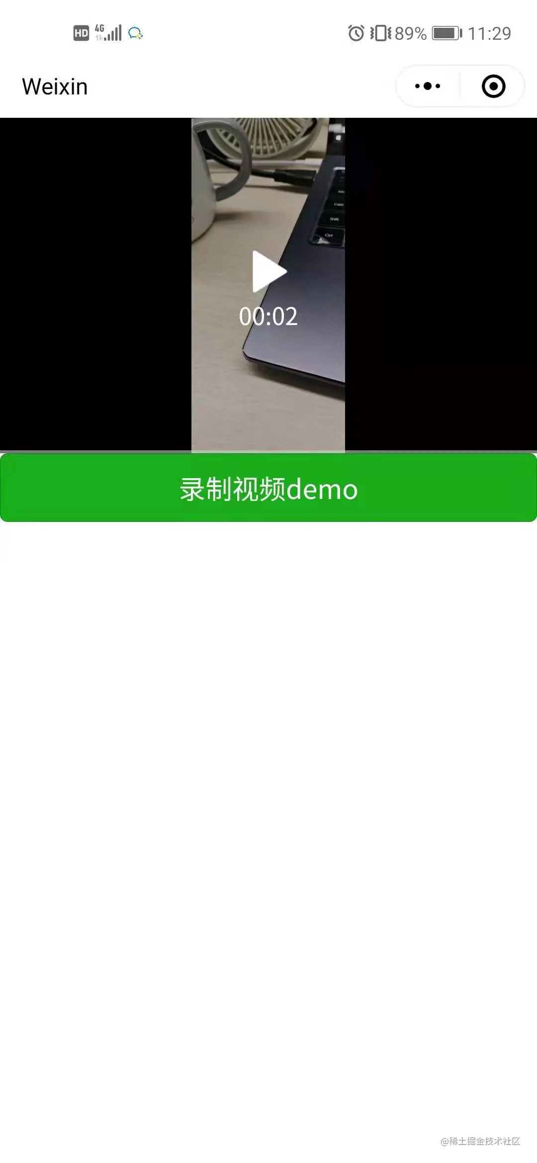 wx.chooseVideo是微信官方提供的接口,不需要用户授权,可直接调用返回拍摄完的视频地址,但是部分机型使用该接口时会出现上述问题,导致无法完成拍摄。
