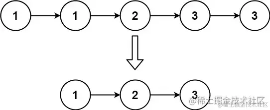 - 如果当前元素的值等于下一个元素的值,那么删除下一个元素, 在链表中的操作就直接将当前节点的下一个节点, 执行下下个节点;