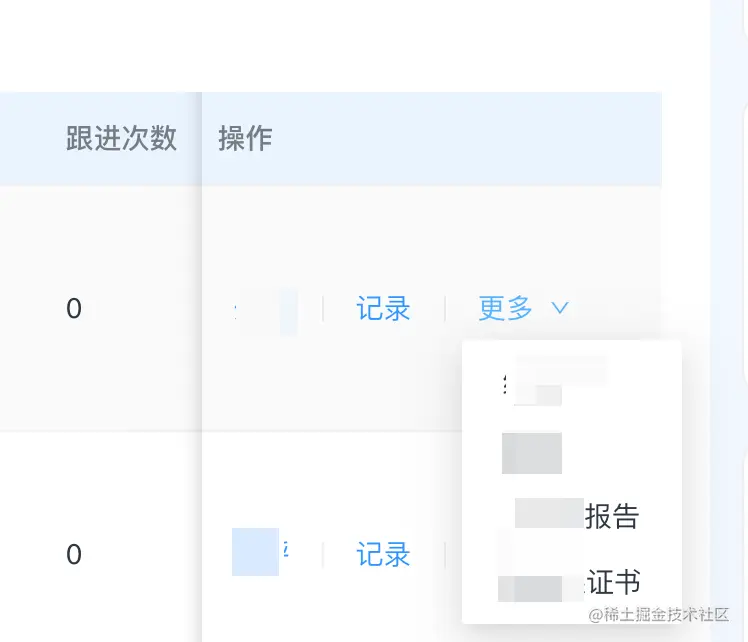 但每次定义 Table 的操作列时,都要写一大堆重复的“模板代码”,一来效率低,二来不便于通过交互细节,故对这个场景进行抽象封装,整理成一个通过组件