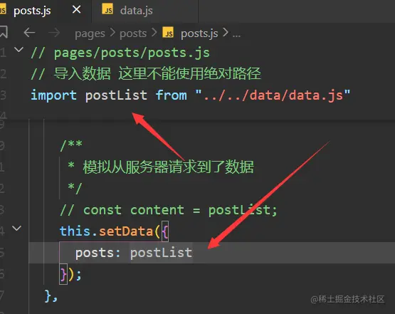 现在我们把模拟的文章请求数据从posts.js文件中抽离出去。这里简单模拟几篇数据,需要更多的数据可以自己随意书写。