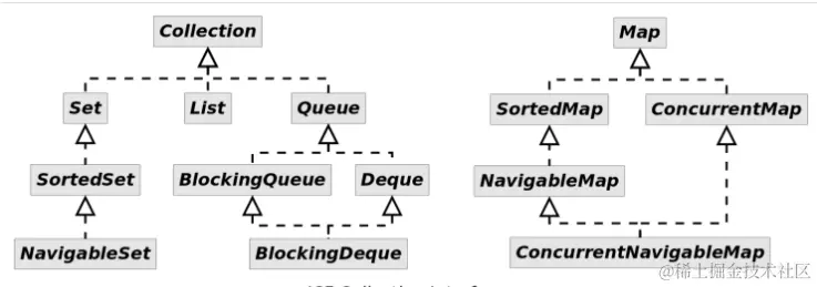 Map 接口没有继承自 Collection 接口,因为 Map 表示的是关联式容器而不是集合。