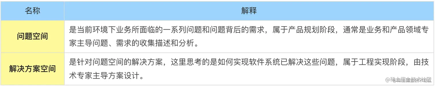 领域中还同时存在问题空间和解决方案空间。它们的含义如下所示:
