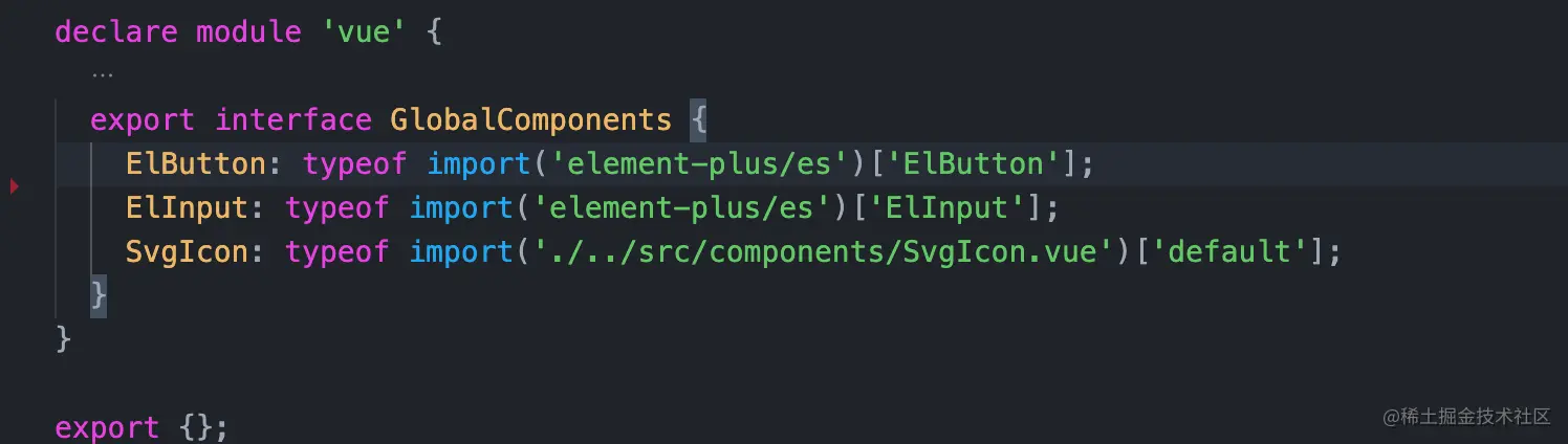 在我们引入使用之后会自动的在components.d.ts加入组件引用的类型声明