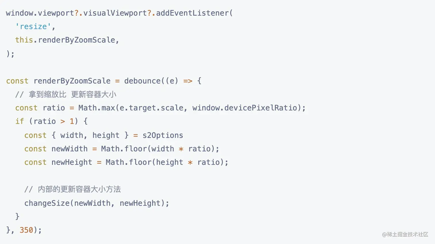 那么如果解决呢?答案就是 使用 VisualViewport API, VisualViewport 可以被用做移动端的双指缩放监听,同样适用于 mac 触摸板