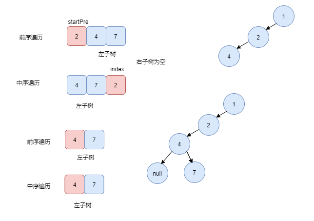root.right = constructBinaryTree(pre, (index - startIn) + startPre + 1, endPre, in, index + 1, endIn);