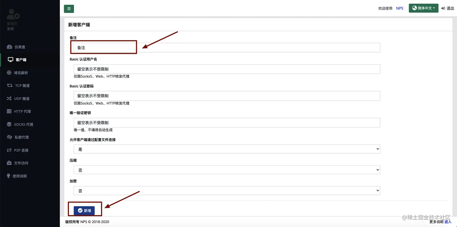 NPS 是一款轻量级、功能强大的内网穿透代理服务器。支持 tcp、udp 流量转发,支持内网 http 代理、内网 socks5 代理,同时支持 snappy 压缩、站点保护、加密传输、多路复用、header 修改等。支持 web 图形化管理,集成多用户模式。管理系统比 FRP 方便很多,更容易上手。