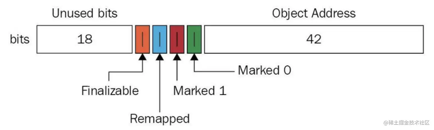 我们称这些位为元数据位,ZGC 中这些位有且仅有一个位是 1。