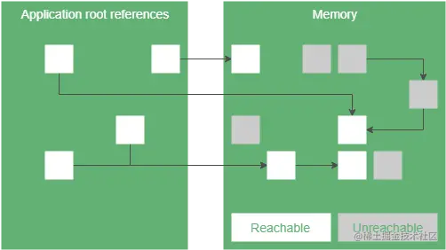 - stop-the-world 阶段。在这个阶段,我们寻找并标记根引用(root references)。根引用是堆中可达对象的起点,可以是局部变量或静态字段。这个阶段通常时间非常短,因为根引用的数量一般都非常小;