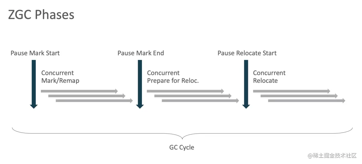 在 ZGC 中,Relocation 包括以下几个阶段: