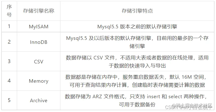 存储引擎是指定在表上面的,每个表都可以指定其自己的引擎;不管使用什么存储引擎,都会产生一个后缀为 frm 的文件,改用来定义表结构。