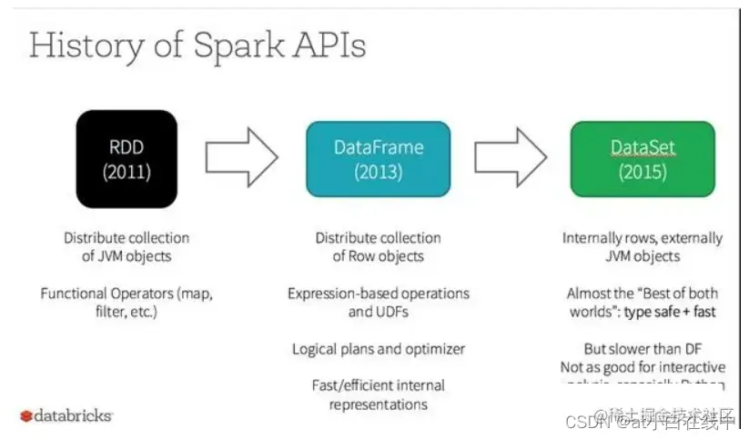Spark最初的意图之一是提供一个统一的编程模型,能够解决不同用户的各种需求——这是它投入了大量精力的一个重点。Spark最初的基于rd的API已经能够进行各种数据处理。后来,为了简化用户的开发,在Spark 2.0 (DataFrame = Dataset [Row])中引入并整合了更高级别的DataFrame(在RDD中向结构化数据中添加列)和Dataset(向DataFrame列添加类型)。Spark SQL支持也相对较早地引入。随着特定于场景的api的不断改进,比如结构化流以及与机器学习和深度学习的集成,Spark的api变得非常容易使用,现在已经成为该框架最强大的方面之一。