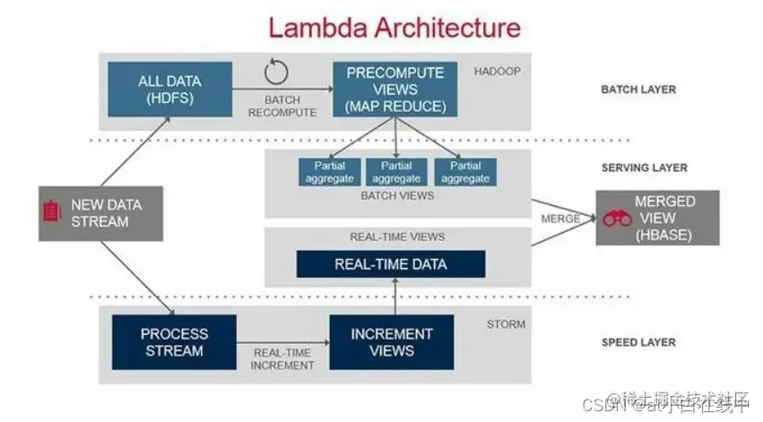上面的图片描述了一个典型的lambda架构。仅仅展示了两种场景(批处理和流处理),它已经涉及了至少四到五种技术,不包括经常需要考虑的替代方案。通过添加实时查询、交互分析、机器学习和其他场景,每种情况都涉及到以不同方式覆盖重叠区域的几种技术之间的选择。因此,业务通常需要使用许多技术来支持完整的数据处理。再加上研究和选择,投资者需要消化的信息量是巨大的。