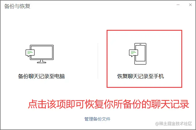 第3步:那微信聊天记录备份完怎么打开?点击「管理备份文件」就可以看到我们每一次备份的历史记录,无备份则不显示。