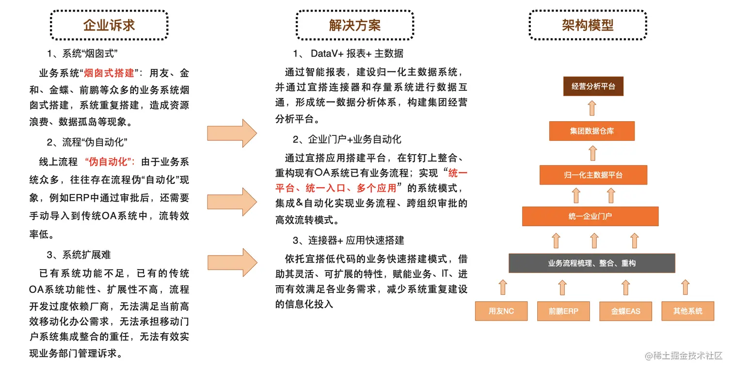 叶周全指出,市场上很多企业在推动的数字化进程中遇到了系统“烟囱林立”、流程“伪自动化”、系统扩展难的问题,面对这些企业数字化转型失败的情况,钉钉宜搭也提出了自己的解决方案。