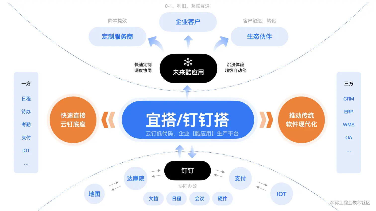 钉钉宜搭是阿里巴巴自研的云钉低代码平台,深度融合了钉钉和阿里云的能力,成为“云钉一体”战略中重要组成部分。