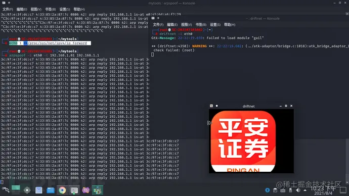 这样就ok了,还有一种方法,可以使目标正常上网,并且可以浏览到他加载了哪些图片:流量转发+arpspoof+driftnet