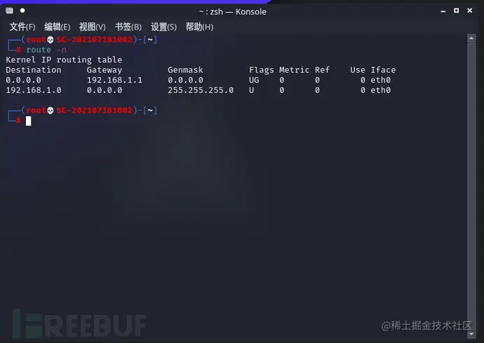 先说说怎么知道局域网关:如上图,输入route -n即可,我们看到gateway那一竖拍中192.168.1.1就是我们要找的网关了。