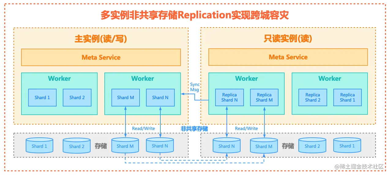 和单实例内多副本的Replication相比,跨实例的Replication实现了Meta的物理复制。