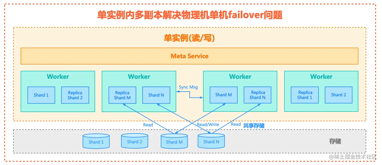 1.单实例多副本:一个实例内采用Shard级多副本机制,可用来实现跨进程高可用,读写分离,同时因为副本可动态增加,能轻松支持高并发的读。