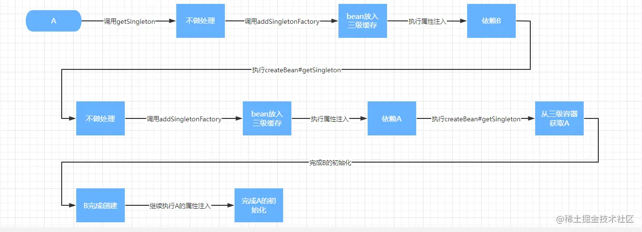 //这里做判断,判断该bean是否已经开始了创建,如果是则需要执行后续逻辑,同时再注入一次容器