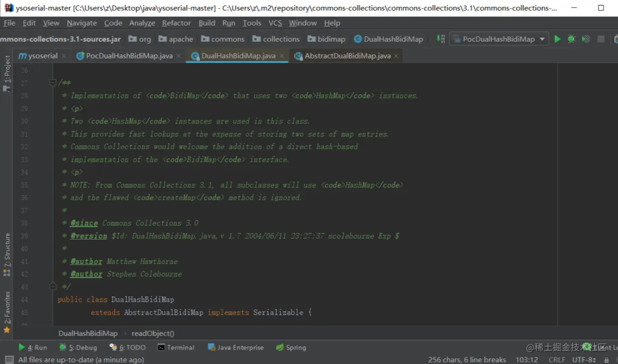 找到了readObject()入口,接下来我们有必要来了解一下DualHashBidiMap这个类的作用。