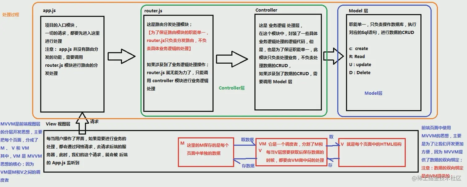 MVVM:前端视图层的概念,只要关注视图层分离,即前端视图层分为:Model、View、ViewModel。