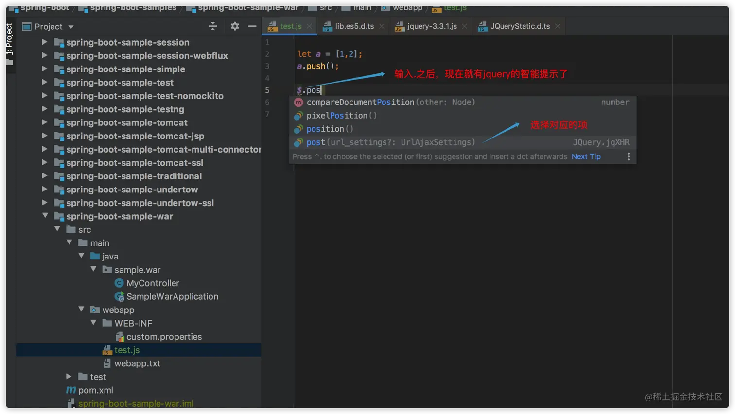 idea只自带了原生js智能提示功能,但是没有jquery智能提示