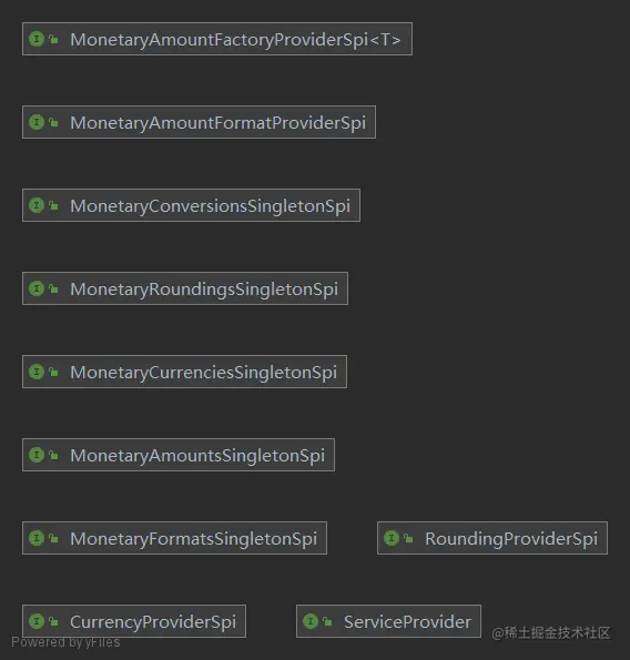 因此,CurrencyUnit的数据提供者为实现CurrencyProviderSpi的相关实现类。Moneta提供的默认实现存在两个提供者,如图所示;