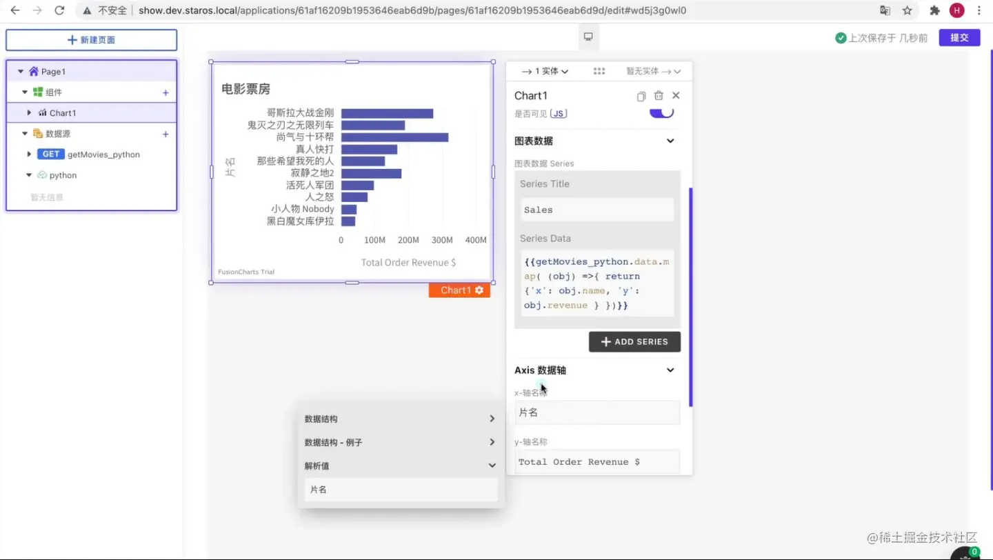 通过StarOS低代码功能,快速制作出电影票房数据可视化大屏。