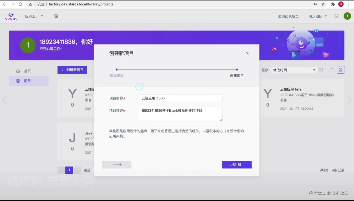 登录StarOS,新建一个项目,项目名称可以自定义。