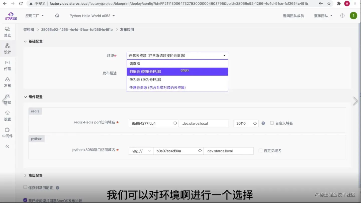 发布的时候可以对环境进行选择,你可以选择发布到阿里云或者是华为。