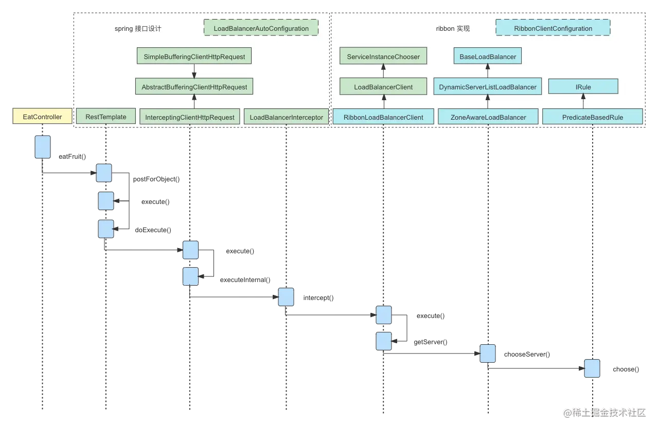 ribbon 是 spring-cloud-common 提供的 LoadbalancerClient 上的实现,即LoadbalancerClient是ribbon 的入口,后续的处理就是ribbon 的个性实现;