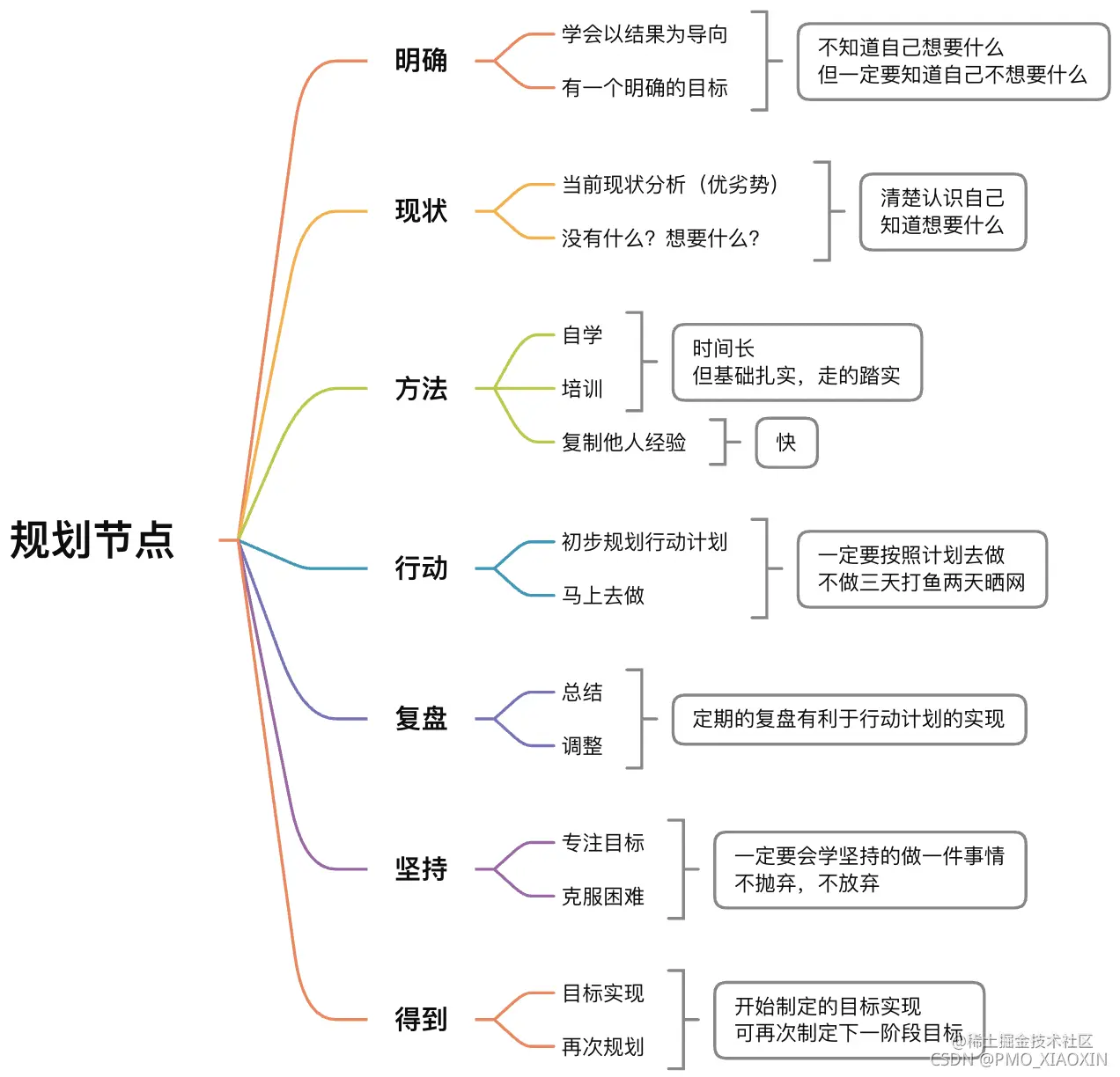短期目标,则可以理解为长远目标的拆分,可按时间拆分,再或者拆细颗粒度等,按照自己个人方式进行分解,在考虑短期目标时需要确保方向是在长期目标范围之内的。其实不论做任何事情,大到每一年,小到每个季度,都会做一些目标上的设定,其实所谓人生规划也是一样。