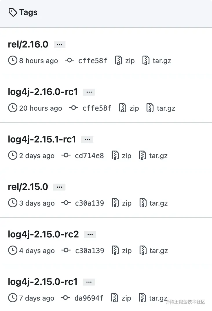 这几天为了应对《突发!Apache Log4j2 报核弹级漏洞。。赶紧修复!!》,Log4j2 连续发布了两个 RC(Release Candidate)候选版本,1 个正式版本。