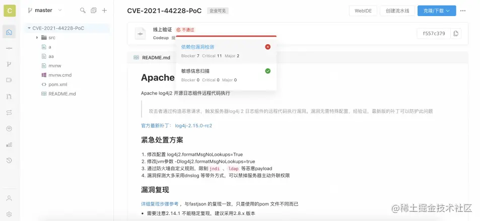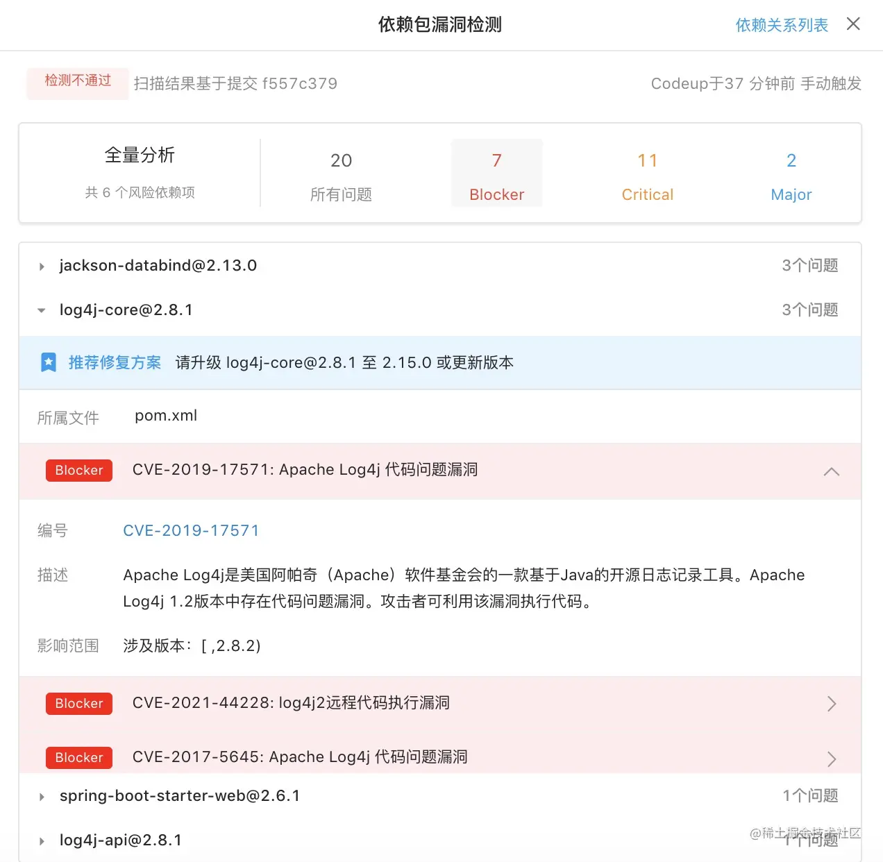 本次 Apache Log4j2 开源依赖包漏洞为所有人敲响警钟,企业的代码作为最重要的数字资产之一,很可能正面临着各种安全风险。企业和开发者在解决这个单点问题的同时,还需要思考如何更全面的保障自己的代码数据安全。