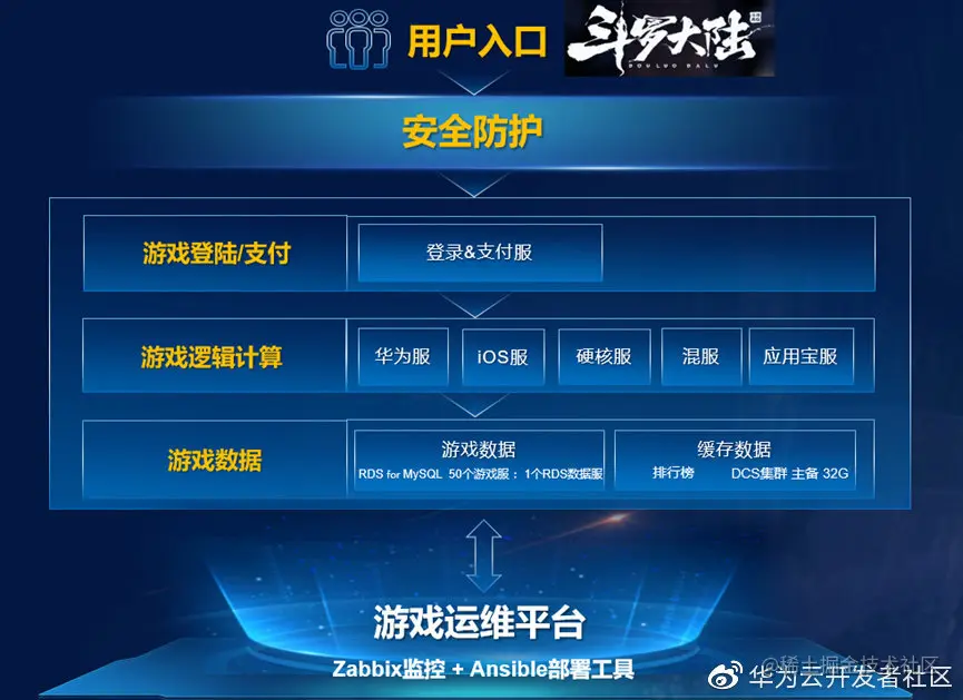 在这样的机遇下,促成了中手游和华为云的强强联合,华为云RDS for MySQL数据库为这些问题带来了突破口。和自建的社区版本相比,RDS for MySQL数据库的性能更高,在高并发的场景下,性能可提升3倍,同时应用读写分离的技术让业务访问更加稳定,并可实现在线分钟级弹性扩缩容;针对游戏需要的低时延场景,提供本地盘的方式,解决了通用云盘方案时延过大的问题。同时,它有完善的备份恢复机制,支持主备秒级切换、732天超长自动备份、以及游戏归档所必需的批量PITR技术。在RDS for MySQL的支撑下,《斗罗大陆-斗神再临》手游得到轻松部署。