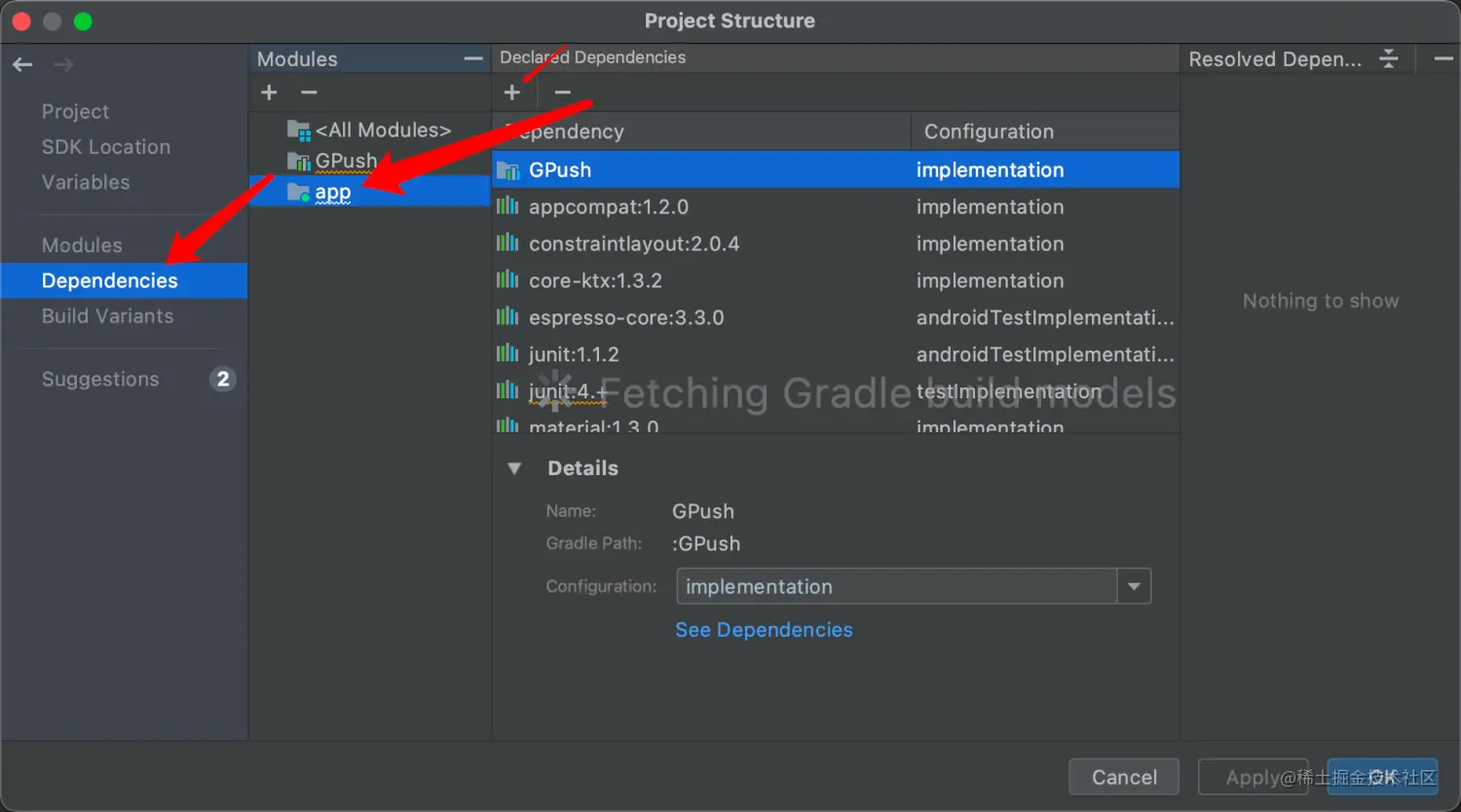 打开上个章节我们创建的示例工程,在工程上创建一个 library module,命名为GPush,让我们模拟实现一个推送简短新闻的接口。