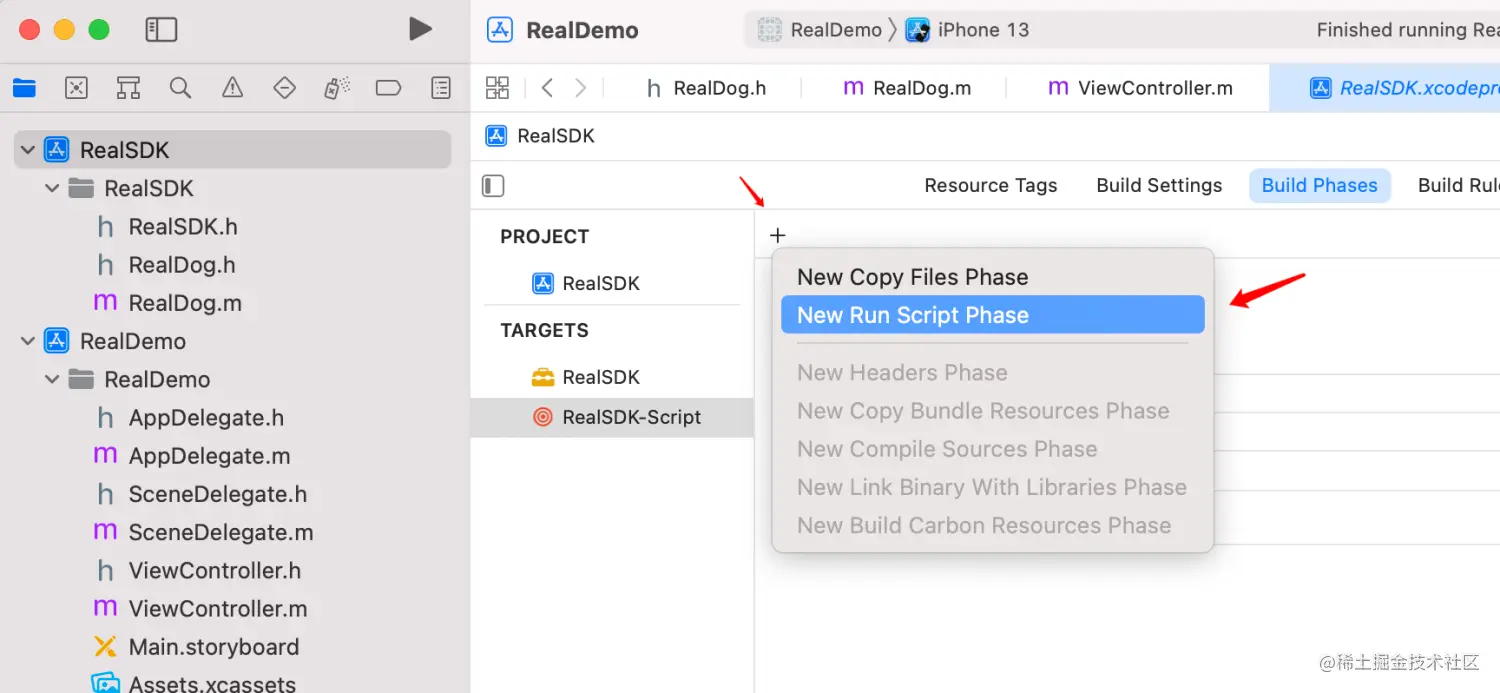 第二步:将 Aggregate Target 命名为“RealSDK-Script”