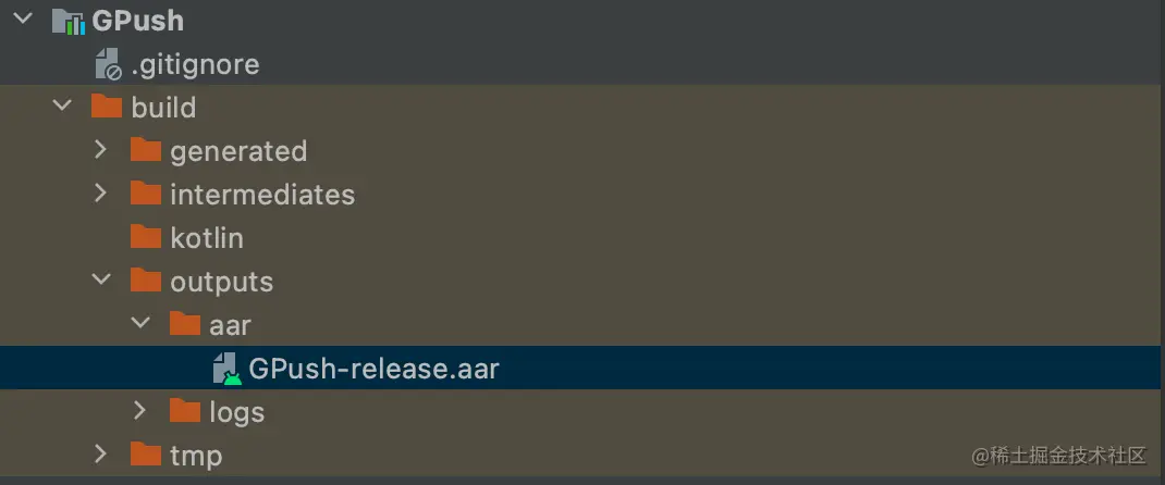 打包完成后就行生成一个 aar 文件, 这个文件就是我们打包的结果了