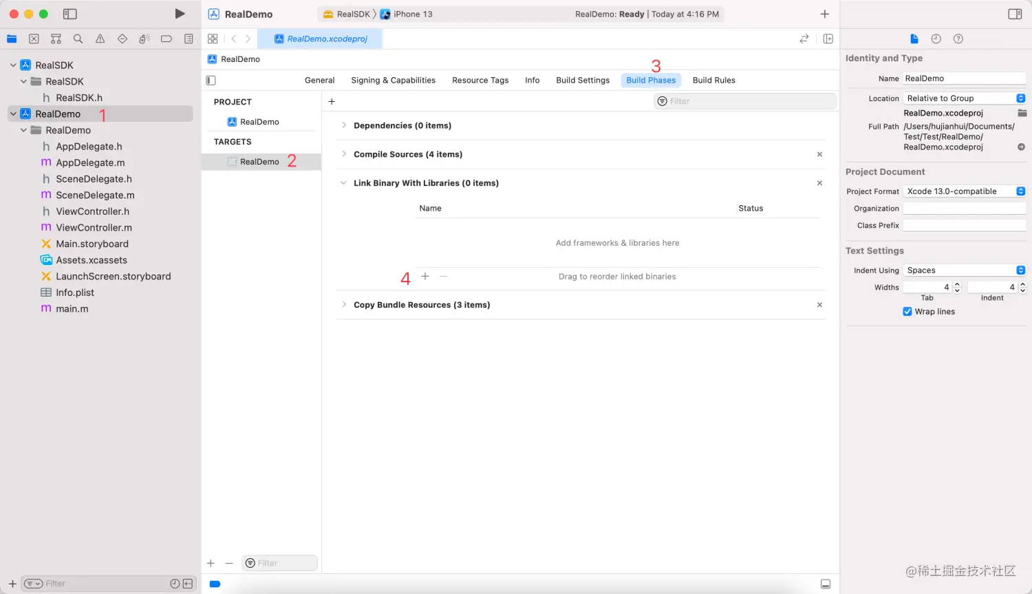 然后我们直接把需要连接的 Framework 工程(RealSDK.xcodeproj)和 App 工程(RealDemo.xcodeproj)拖进来就可以了!