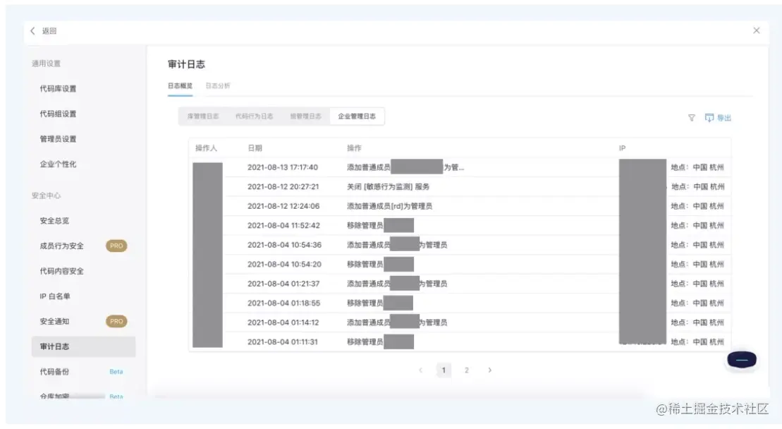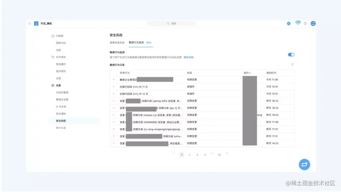Codeup 为企业提供了一系列人员行为管控能力,覆盖敏感行为检测、安全告警和行为日志分析审计等能力,帮助企业更好的在云上管理人员研发协作过程。