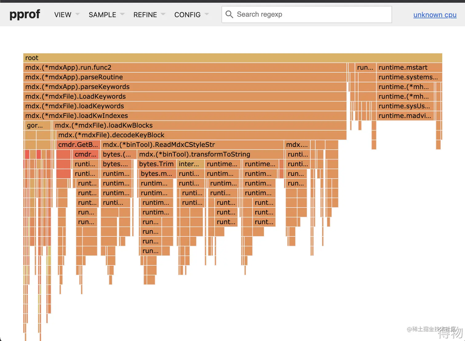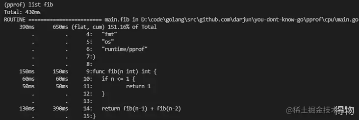这是一个 CPU 的 profile 结果,(示例来自 你不知道的 Go 之 pprof)。这么多数据我们究竟看什么?