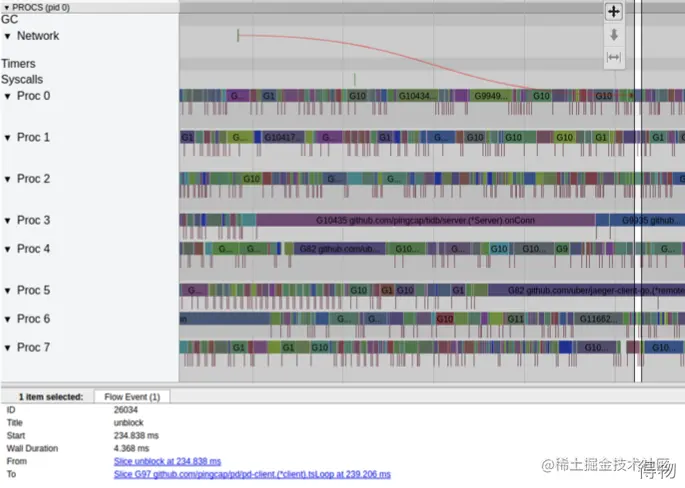 比如示例中从收到数据到Goroutine 被唤起耗时了 4.368 毫秒,数据源于 pingcap 的一个分享。