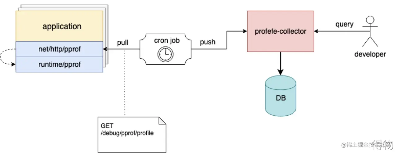 通过 cron 周期性的做 pprof,数据做好归档,再通过 Web 界面选择任意时间的分析,甚至可以对不同时间段的 ppof 做diff 从而发现潜在的问题。Conprof 是很好用的开源替代品。