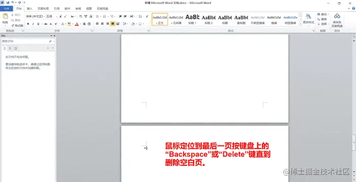 2.然后一直按键盘上的“Backspace”或“Delete”键直到删除空白页。