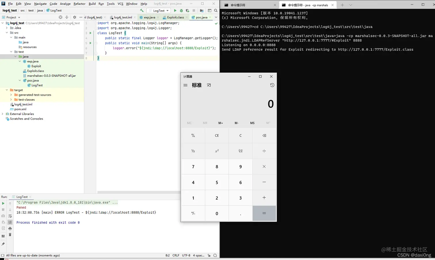 4、运行poc.java,即可访问恶意类并执行写在其中的"calc"命令